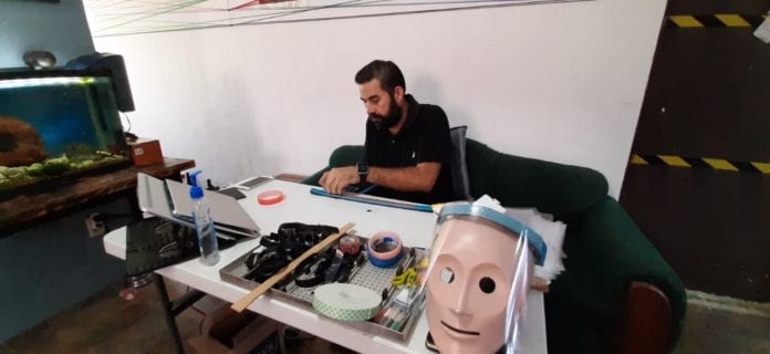 Las caretas utilizan acetato, cinta adhesiva de doble cara, foaming y velcro, a un costo de 30 pesos por unidad, más su mano de obra, todo lo que absorbe él, al donar el equipo gratis.