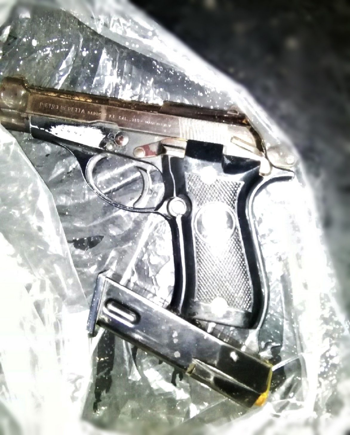 Pistola a la vista y dentro de una bolsa