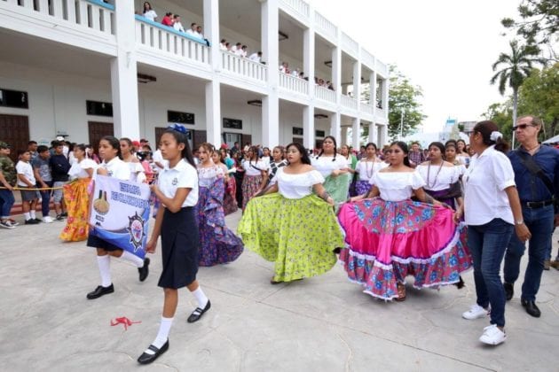 A las ocho de la mañana, los contingentes partieron del Museo de la Cultura Maya y recorrieron la Avenida Héroes hasta llegar a Palacio de Gobierno; desfilaron entre ellos la comunidad de atletas e integrantes de escuelas primarias, secundarias, de educación media superior y superior.