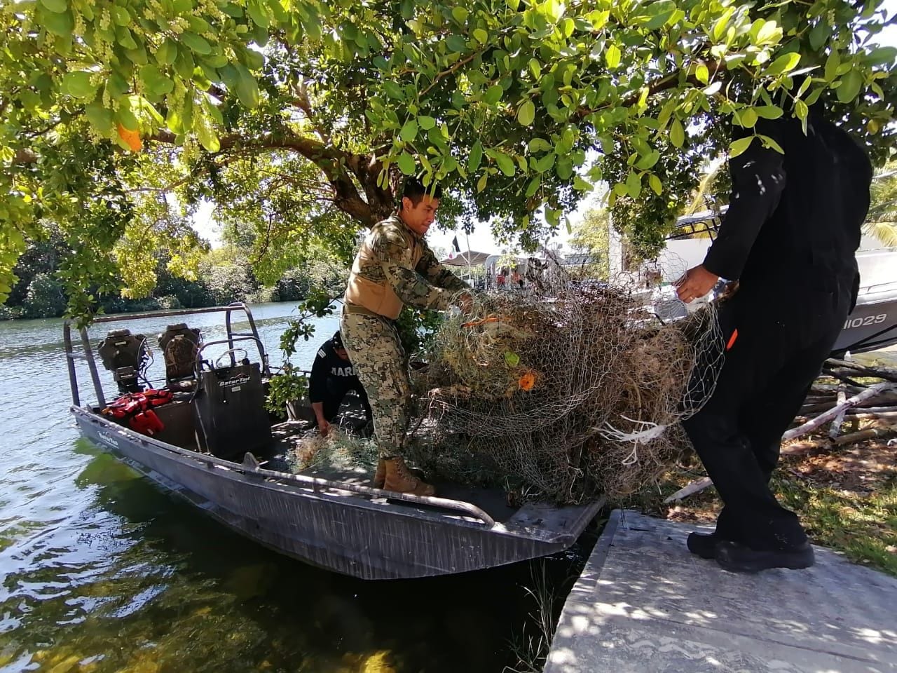 Decomisa la Marina una red ilegal en el estero de Chac en Chetumal