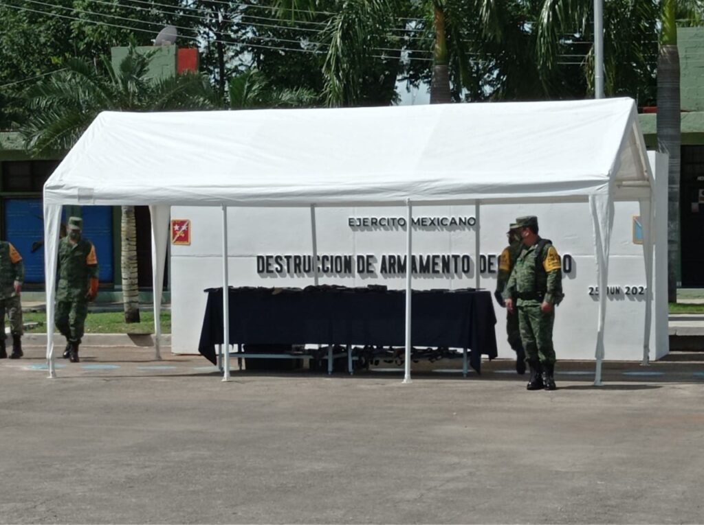 “Son armas que ponen a disposición las diferentes autoridades para que la Secretaría de la Defensa Nacional disponga de ellas y en este caso se ha dispuesto que se lleve a cabo la destrucción de las mismas”, apuntó.