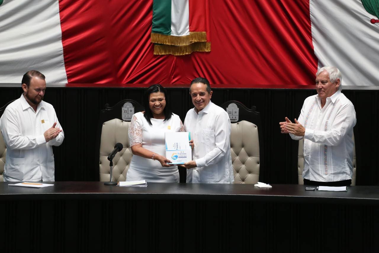 Carlos Joaquín expresó que el cambio de Quintana Roo se refleja en el nuevo tiempo democrático, donde 7 de los 11 municipios son gobernados por mujeres, donde el Congreso lleva dos legislaturas consecutivas con mayoría de mujeres diputados, y donde por primera vez en la historia se tiene una gobernadora electa, Mara Lezama, quien estuvo presente en ambos eventos.