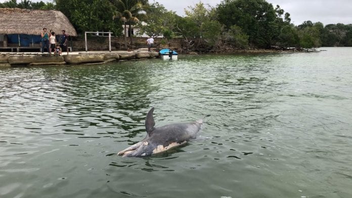 Este delfín es adulto y estaba flotando en la Bahía de Chetumal, tampoco presentaba signos de lesiones o maltrato alguno.