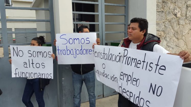 Chetumal.- Hoy la capital del estado, en la víspera de la Nochebuena, despertó con una protesta de los ex empleados del Sistema de Administración Tributaria, quienes han sido despedidos y estaban siendo obligados a firmar su renuncia, con tal de no recibir su liquidación. De acuerdo con datos proporcionados por ellos mismos, hasta el 90% del personal de la capital fue despedido.