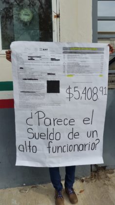 “Mucha gente aquí es jefa de familia y se queda sin un sustento; no somos altos funcionarios, sí somos burócratas, pero todos estamos sujetos a procesos de certificación; y no tenemos sueldos exorbitantes; la mayoría de los compañeros ganan 15 mil pesos al mes”, señaló.