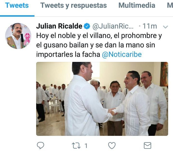 “Hoy el noble y el villano, el prohombre y el gusano bailan y se dan la mano sin importar la facha @Noticaribe”, parafraseó Ricalde.