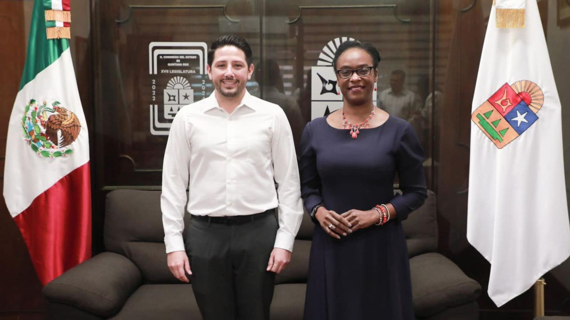 Chetumal, Quintana Roo. – Renán Sánchez Tajonar, presidente de la Junta de Gobierno y Coordinación Política (JUGOCOPO) de la XVII Legislatura sostuvo una reunión de trabajo con la Cónsul General de Estados Unidos, Dorothy Ngutter, a fin de sumar esfuerzos y fortalecer la cooperación en beneficio de la promoción de Quintana Roo y Cozumel.