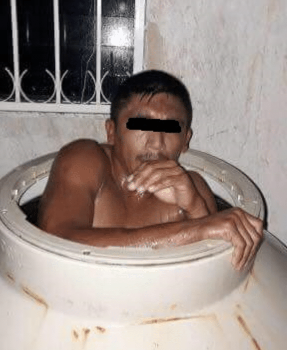Chetumal,Quintana Roo.- Un hombre que intentó cometer un robo en el fraccionamiento Sian Ka’an I, fue detenido, cuando estaba escondido dentro de un tinaco.