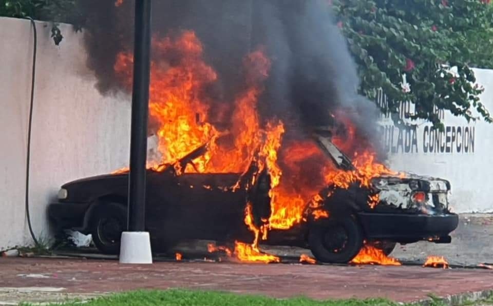 Chetumal.- Un auto tipo Tsuru se incendió la tarde de este sábado sobre la avenida Heriberto Jara, entre Marciano González y CNC.