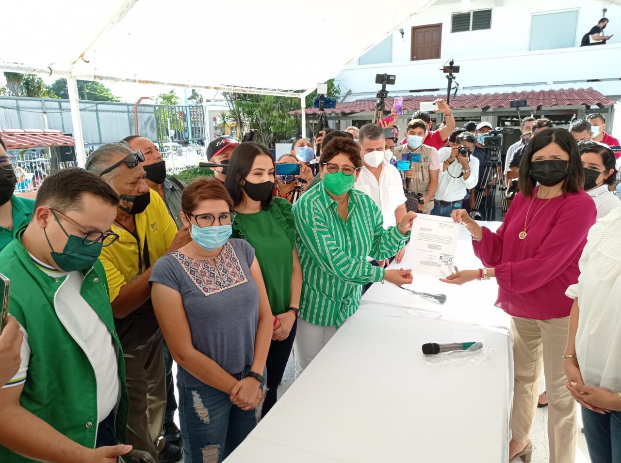 Chetumal.- Yohanet Torres Muñoz, ex secretaria de Finanzas y Planeación del Gobierno del Estado fue inscrita hoy por el Partido Verde Ecologista de México en la primera posición de sus candidatos a diputados por vía plurinominal.