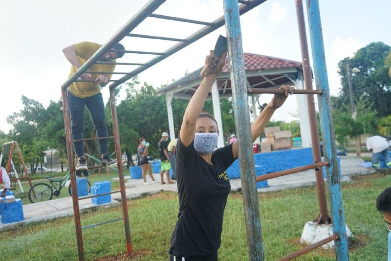 Chetumal, Quintana Roo.-Jóvenes chetumaleños pusieron el ejemplo de cómo es posible mejorar la comunidad en unidad, al trabajar en restaurar parques y domos de dos comunidades.