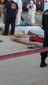 La zona fue acordonada por agentes policiacos, mientras bomberos y peritos de la Fiscalía trabajaban en verificar el nivel de riesgo y en el retiro de los cuerpos.