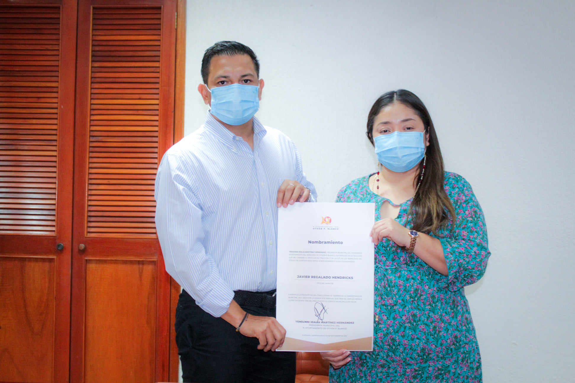 Chetumal, Quintana Roo.- Entre sus primeras acciones como presidenta municipal de Othón P. Blanco, Yensunni Martínez, dio el nombramiento oficial a Javier Regalado Hendricks como Oficial Mayor, a José Gaspar Ríos Padilla como Director de Asuntos Jurídicos; y Josué Leonardo Jiménez Herrera como Director de Recursos Humanos.
