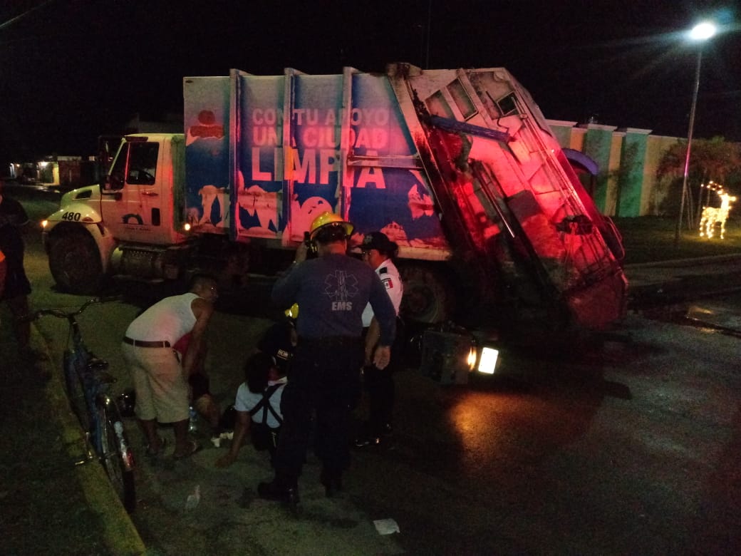 El camión recolector de basura realizaba su recorrido sobre la avenida Manuel Evia Cámara casi esquina con Luis Manuel Sevilla, cuando de repente los trabajadores de limpia escucharon un golpe en la parte trasera de la unidad, inmediatamente se dieron cuenta que la motociclista se había estrellado. Al camión no le pasó nada, no así a la motocicleta y su conductora.