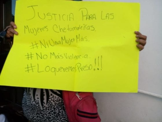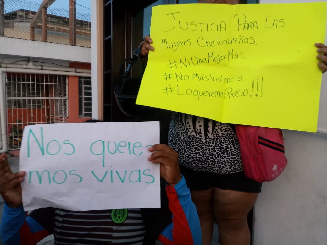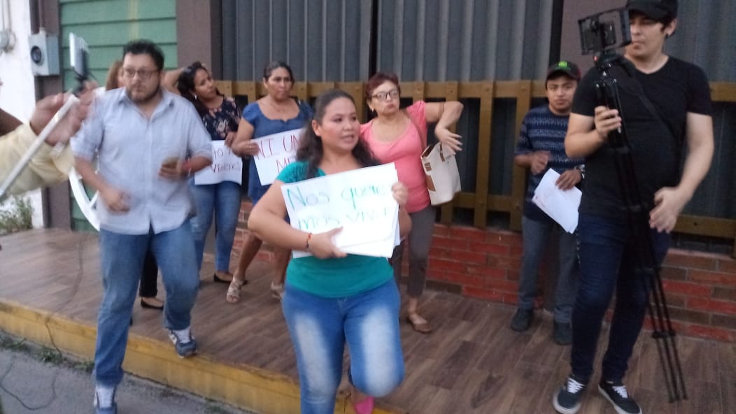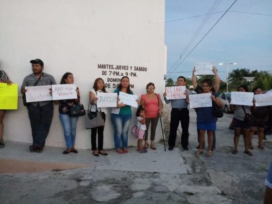 Chetumal.- La tarde de hoy martes, un grupo de personas se manifestó frente al restaurante propiedad del padre del hombre acusado de intentar asesinar a golpes a una mujer, para exigir justicia.