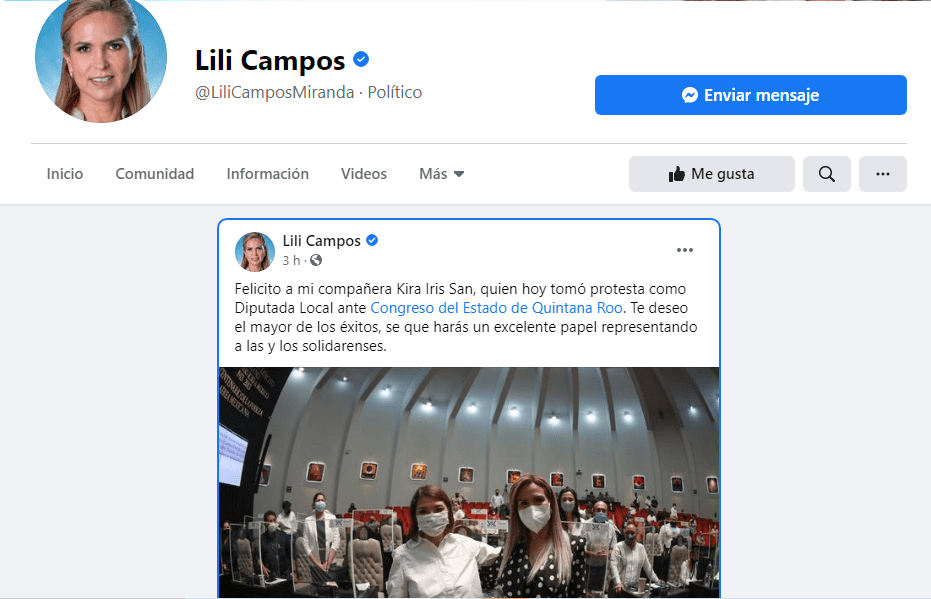 “Felicito a mi compañera Kira Iris San, quien hoy tomó protesta como Diputada Local ante el Congreso del Estado de Quintana Roo. Te deseo el mayor de los éxitos, se que harás un excelente papel representando a las y los solidarenses”.