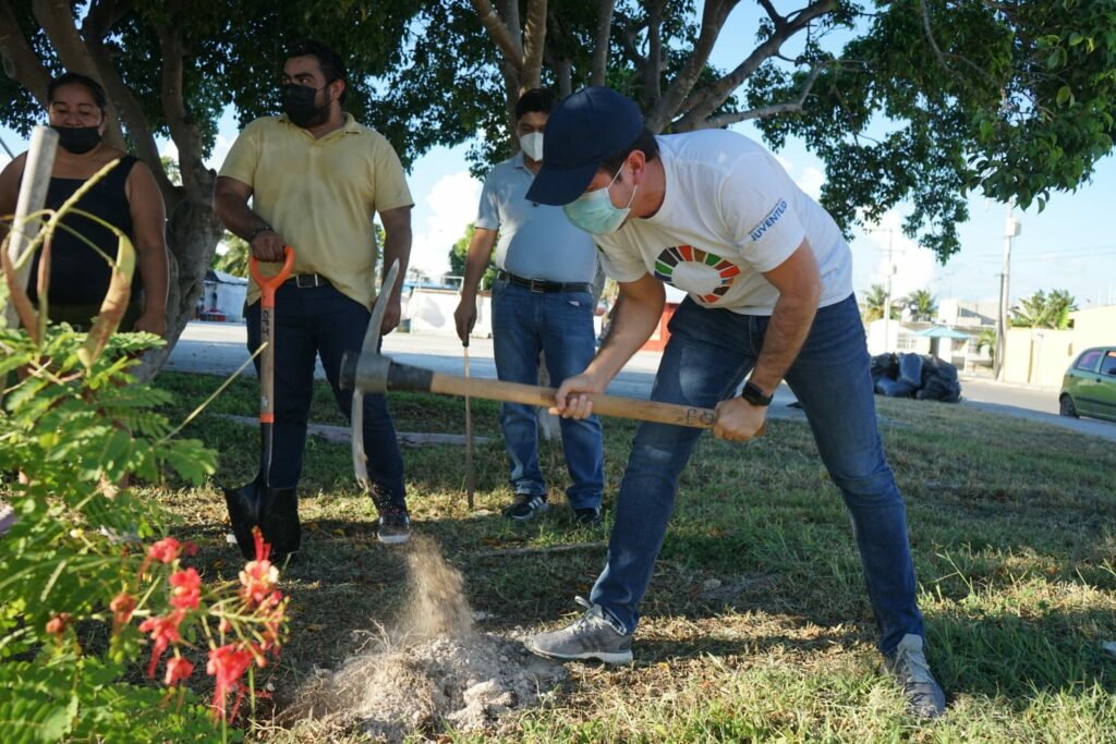 Chetumal, Quintana Roo, 11 de noviembre.- Esta tarde jóvenes que conforman el Voluntariado 2030 acompañados del director general del Instituto Quintanarroense de la Juventud, Fernando Méndez Santiago acudieron al Fraccionamiento Caribe para ayudar a vecinos del lugar a realizar labores de limpieza del parque.