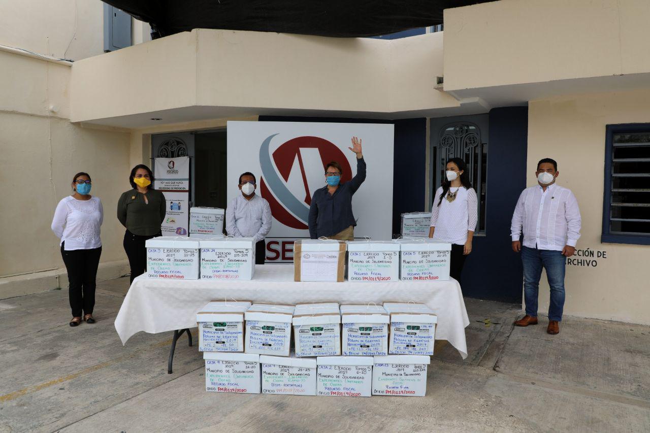Chetumal, Quintana Roo.-Dando puntual seguimiento a la ley y sobre todo a la transparencia, se hizo entrega de la Cuenta Pública, presupuesto de Egresos e Ingresos así como de los expedientes unitarios de obras y acciones sociales del Ejercicio Fiscal 2019 de manos de la presidente municipal Laura Beristain Navarrete, al titular de la Auditoría Superior del Estado (Aseqroo), Manuel Palacios Herrera, refrendando el compromiso de su gobierno con la rendición de cuentas, apegadas a derecho, tal como lo exige la Cuarta Transformación del país impulsada por Andrés Manuel López Obrador.