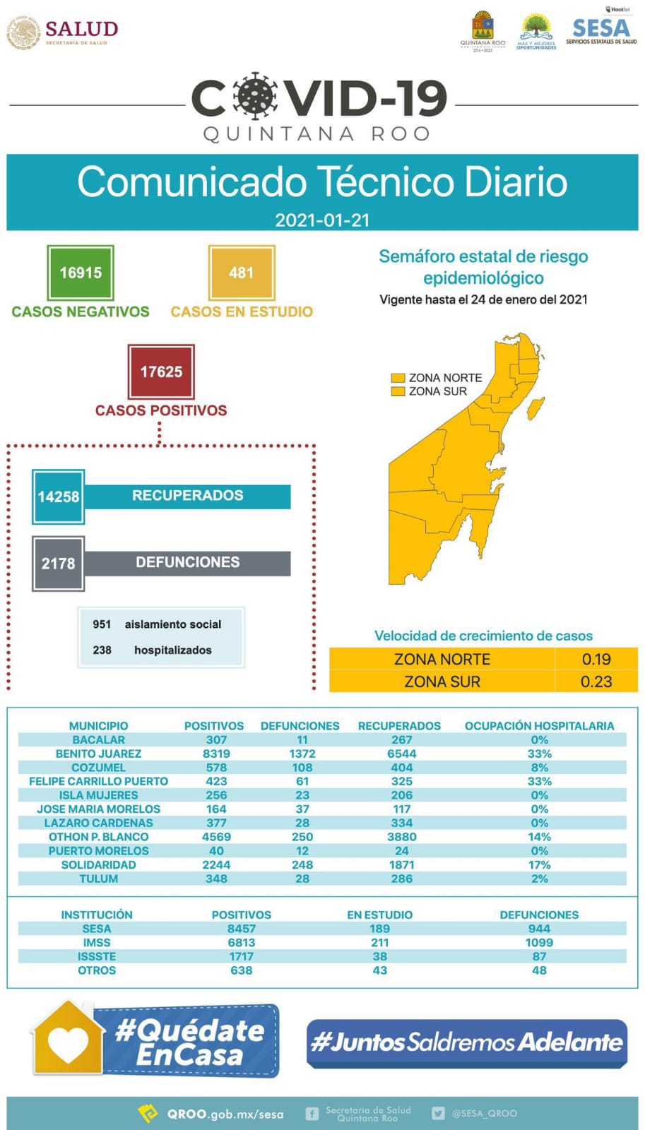 En cuanto a nuevos casos, 118 son de Benito Juárez, 51 de Othón P. Blanco, 22 de Solidaridad, cuatro de Cozumel, dos de Tulum, uno de Bacalar y uno de Felipe Carrillo Puerto.
