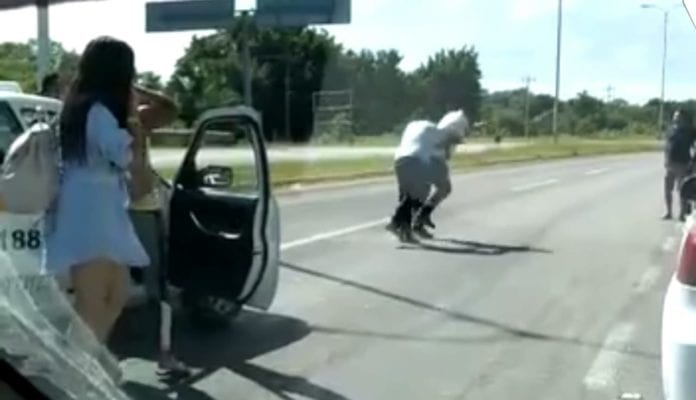 Los reclamos rápidamente cedieron lugar a los golpes, al lanzar el taxista de Bacalar un puñetazo, comenzando el de Chetumal a defenderse de la misma manera, ante la mirada de los pasajeros, que habían ya descendido de la unidad y otros automovilistas, que incluso no podían transitar por este combate pugilístico en medio de la vía asfáltica.