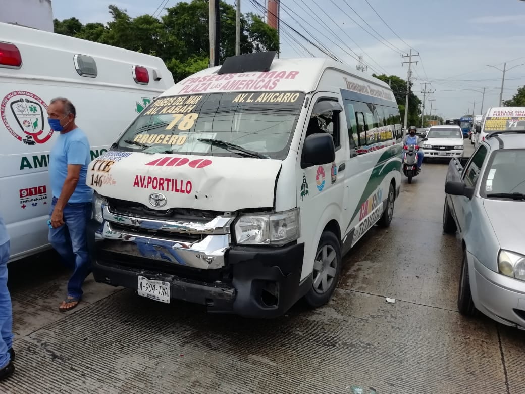 Cancún.- El conductor de una camioneta tipo Urvan del transporte público, no midió su distancia con el vehículo de enfrente a quien golpeó fuertemente y dejó como saldo a tres personas que tuvieron que ser atendidos por paramédicos debido al impacto.