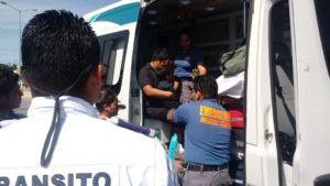 Playa del Carmen.- Nueve personas, entre ellos cinco menores de edad, quedaron lesionados al estrellarse una combi del transporte público contra un automóvil particular, en la avenida Gavilanes con Azulejos de esta ciudad.