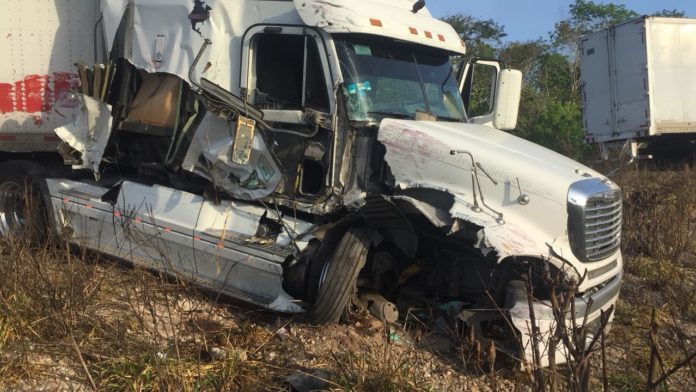 Felipe Carrillo Puerto.- Un tráiler y un microbus se vieron involucrados en un aparatoso accidente en la carretera federal 307.