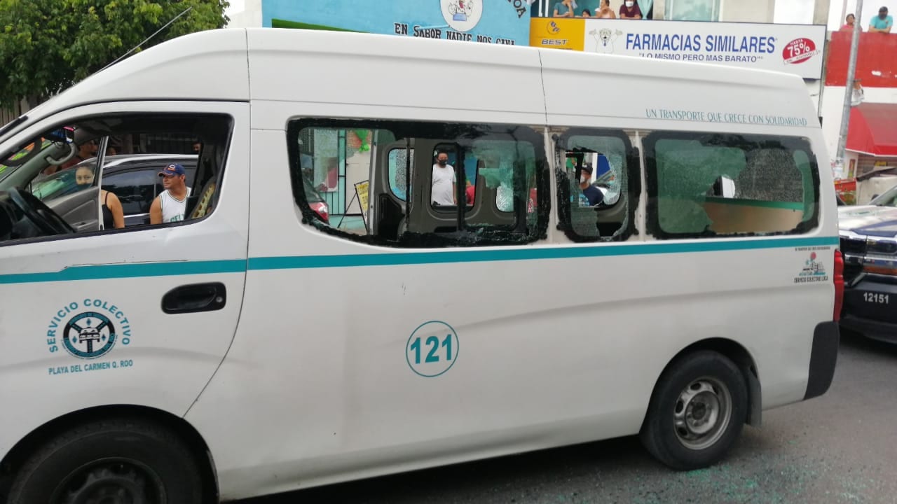 El chofer de esta unidad de transporte colectivo, con número 121, comienza a insultar a ambos, momento en el que la mujer obtiene un palo y se lo entrega a su pareja, quien comenzó a romper los vidrios de esta combi, para el terror de los pasajeros que iban a bordo.