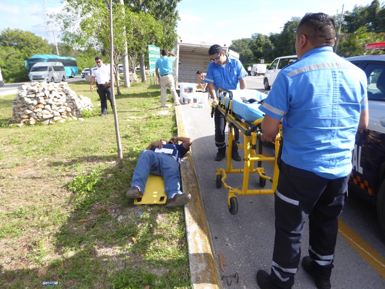Un camión de pinturas se estrelló por alcance en contra de un camión de verduras, en la carretera Cancún-Playa del Carmen, a la altura del hotel Ocean H10. El conductor del primer vehículo resultó herido, por lo que debió ser auxiliado por paramédicos de un servicio privado.