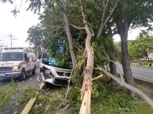 Un camión de la empresa Turicún avanzaba sobre la avenida Cobá, con dirección a la Zona Hotelera, pero en el cruce con La Costa, un carro compacto que no respetó el semáforo se le atravesó en su camino. El chofer no pudo frenar a tiempo, ya que circulaba a exceso de velocidad, por lo que lo embistió en el cuarto frontal, antes de desviarse y acabar en el camellón central, detenido por unos árboles.