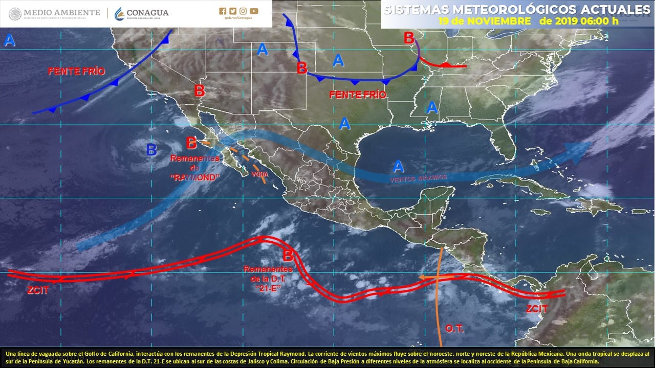En la península de Yucatán las temperaturas son cálidas durante el día y frescas a frías por la tarde y noche sobre los tres estados peninsulares, con cielo despejado a medio nublado sin precipitaciones.