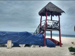 En el lugar había cinco palapas para masaje y un área de camastros, palapa para la venta de nieves y sanitarios, snack bar, bar, deck anexo al bar, torre guardavidas, área de botes de basura, área de tarima para eventos, entre otros; instalaciones que ocupan una superficie de mil 848 metros cuadrados.