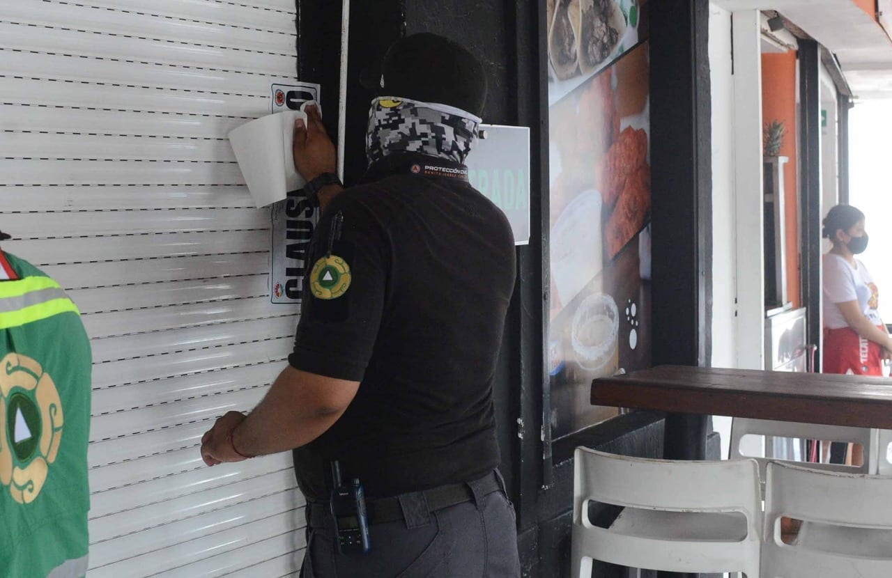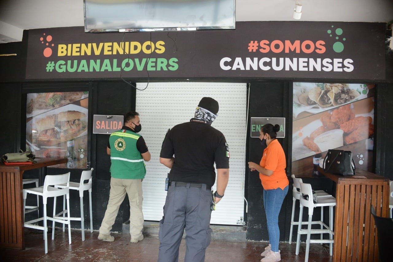 Cancún.- Personal de Protección Civil de Benito Juárez clausuró esta tarda el bar denominado “Las de Guanatos”, de la Plaza de Toros, por incumplimiento de documentación, no por el accidente en el que una joven sufrió quemaduras en la cara por una bebida flameada.