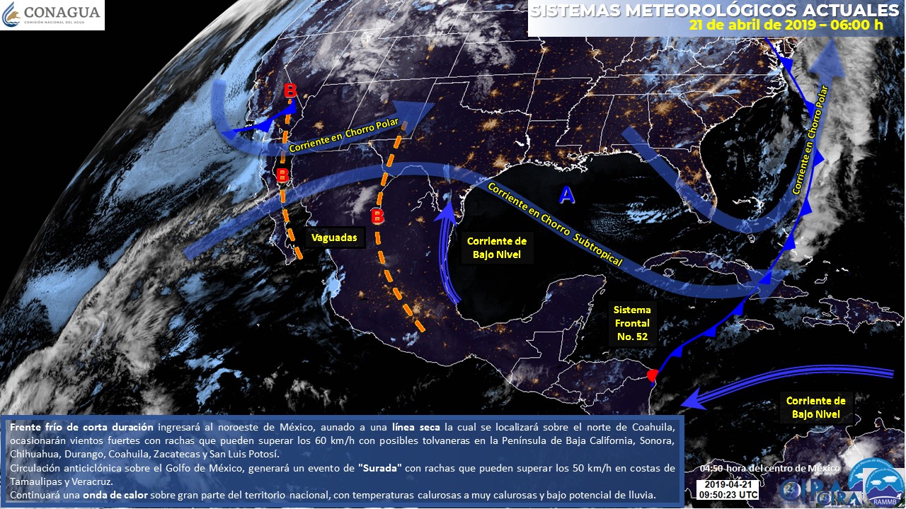 Los vientos serán de 15 a 20 kilómetros por hora con algunas rachas de hasta 35 kilómetros por hora.