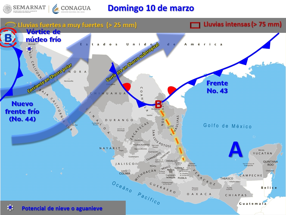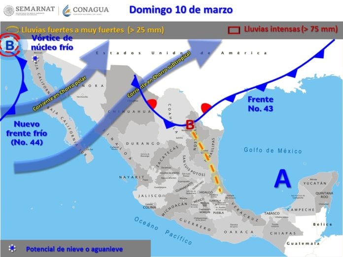 Habrá además vientos moderados del este al sureste de 10 a 15 kilómetros por hora con algunas rachas de hasta 25 y 30 kilómetros por hora.