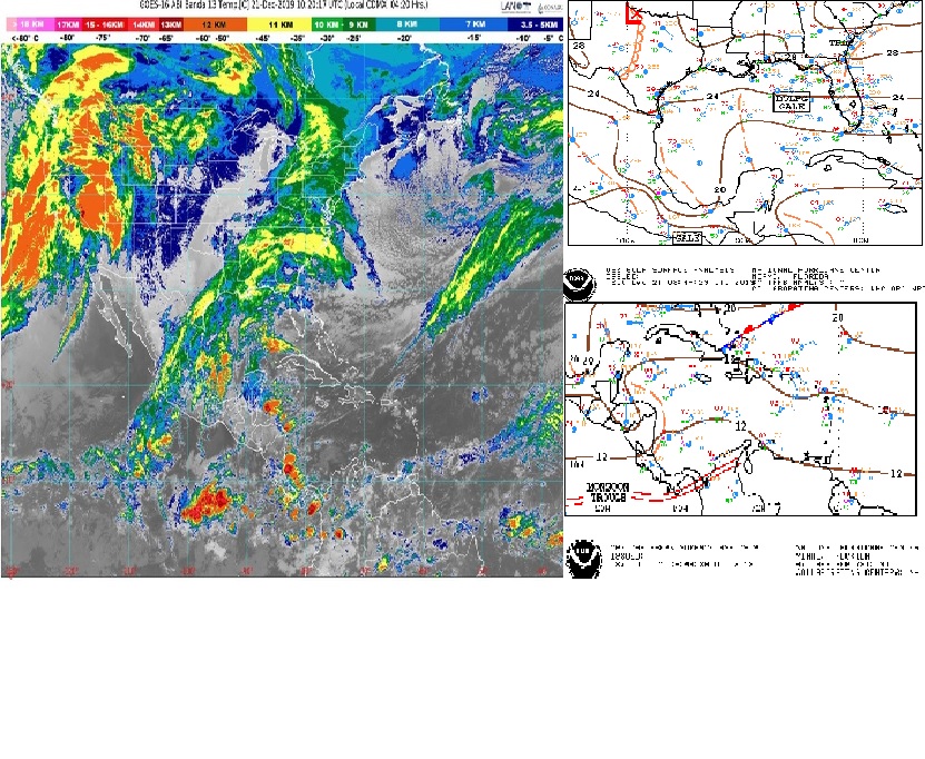 Chetumal.- La entrada de aire continental polar modificado que impulsaba al frente frío 23, se espera que se fortalezca en las próximas 24 horas, dando lugar al próximo Frente Frío; además provoca temperaturas frescas, viento del norte, nubosidad variable y posibilidades de lluvias dispersas con algunos chubascos acompañados de posible actividad eléctrica ocasional sobre Quintana Roo.