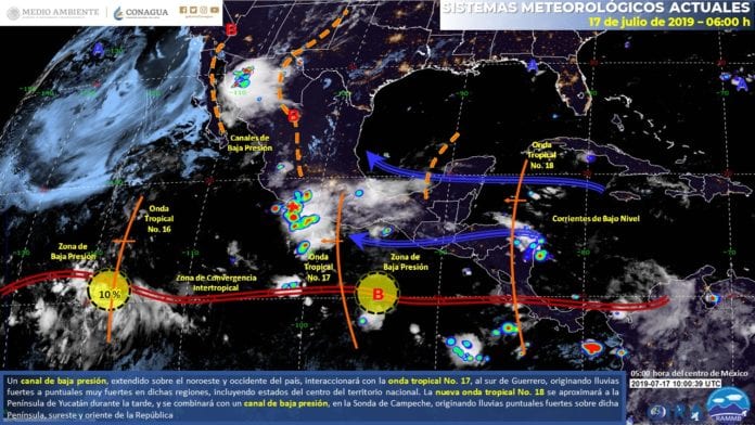 Playa del Carmen.- La cercanía de la onda tropical número 18, que se ubica desde el occidente de Cuba hasta el centro de Honduras y Nicaragua, podría provocar algunas lluvias fuertes en Quintana Roo durante la tarde, sobre todo en centro y sur del estado.