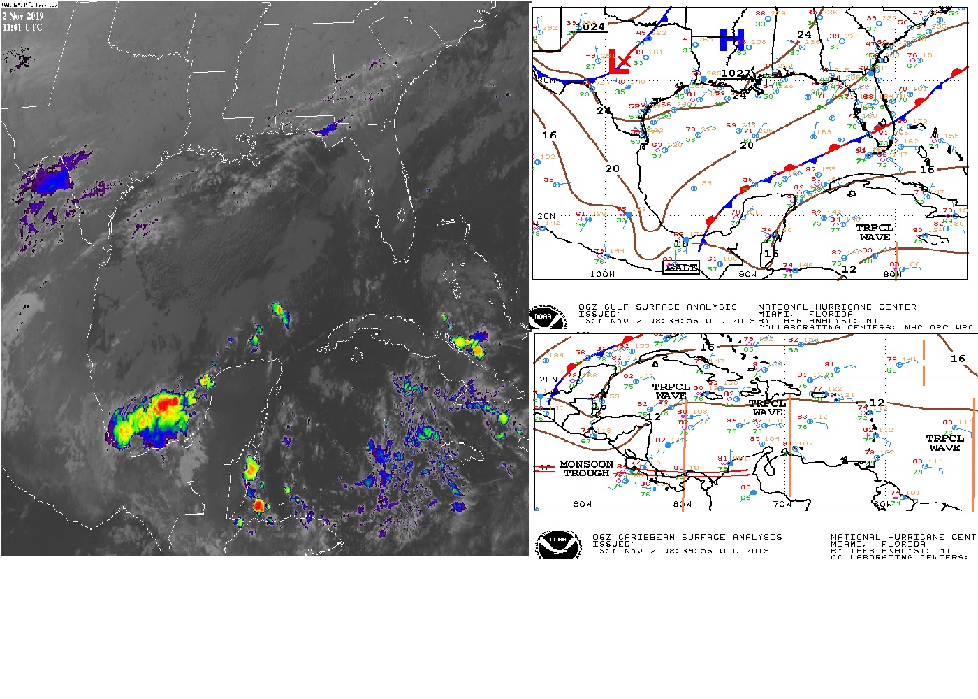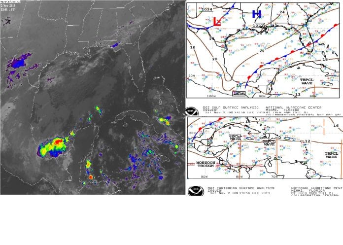 Además las Ondas Tropicales del Mar Caribe se mueven al suroeste provocan nubosidad y lluvias sobre sus áreas de influencia; no presentan condiciones favorables de evolucionar en un sistema tropical, según información del centro nacional de huracanes de Miami, Florida, E.U.A.