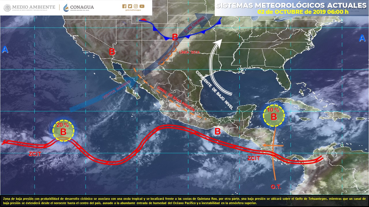 Playa del Carmen.- La zona de baja presión al sur de Cuba ahora se le asocia a la onda tropical 42, cuyo eje cruza el litoral de Nicaragua y en el norte de su eje con el centro de la baja presión, localizada esta mañana a 420 kilómetros al este de Tulum, Quintana Roo. Se le observa 10 por ciento de probabilidades de evolucionar a ciclón tropical y 20 por ciento en cinco días. El sistema podría ingresar a Quintana Roo entre la noche del jueves y amanecer del viernes.