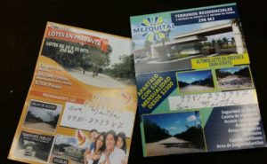 La señora se instaló con una silla, un cartel y algunos folletos, en los bajos del Palacio Municipal. Para ofrecer sus terrenos, admitió que debió pagar 250 pesos.