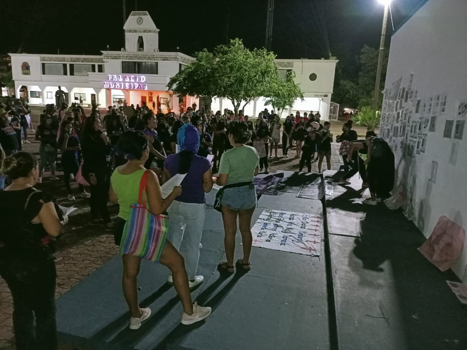 Playa del Carmen.- Colectivos feministas de este municipio se manifestaron de manera pacífica, con una marcha a través de la Quinta Avenida, para luego dirigirse a la plaza 28 de Julio, frente al Palacio Municipal, en donde colocaron una “Antimonumenta”, para honrar a las víctimas de la violencia de género.