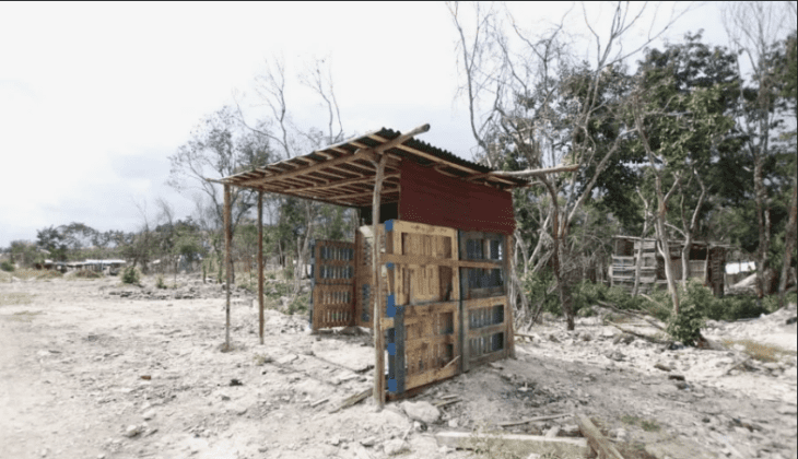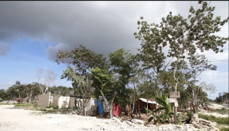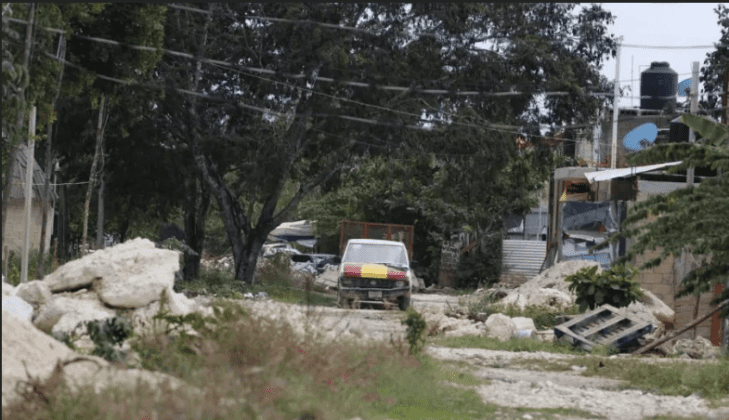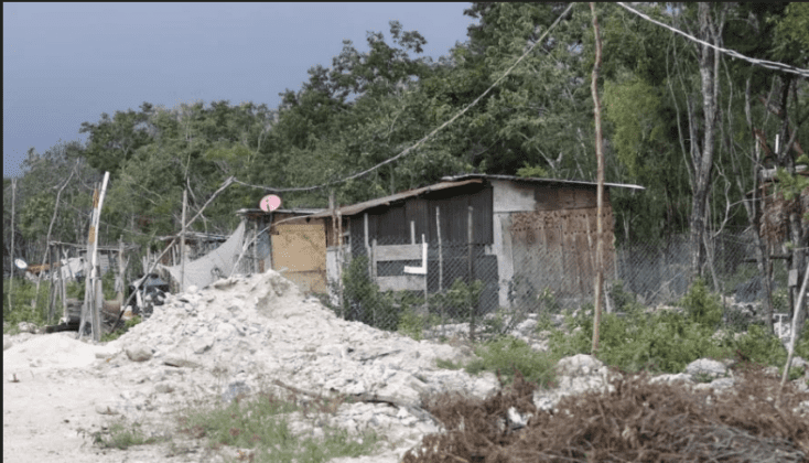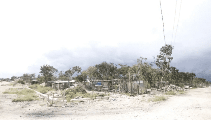Dentro de la colonia, las casas están hechas con tablones de madera, techos y ventanas de plásticos y la energía se consigue “colgándose del que ya está colgado”; el agua escasea y las familias más pudientes tienen servicio de cable. Circula poca gente por las “calles” y además hay letreros en los que se ofrece un espacio para vivir a unos ocho kilómetros de las playas.