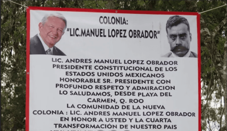 En la colonia cuelga una gran manta con imágenes del tabasqueño junto a Emiliano Zapata que reza: