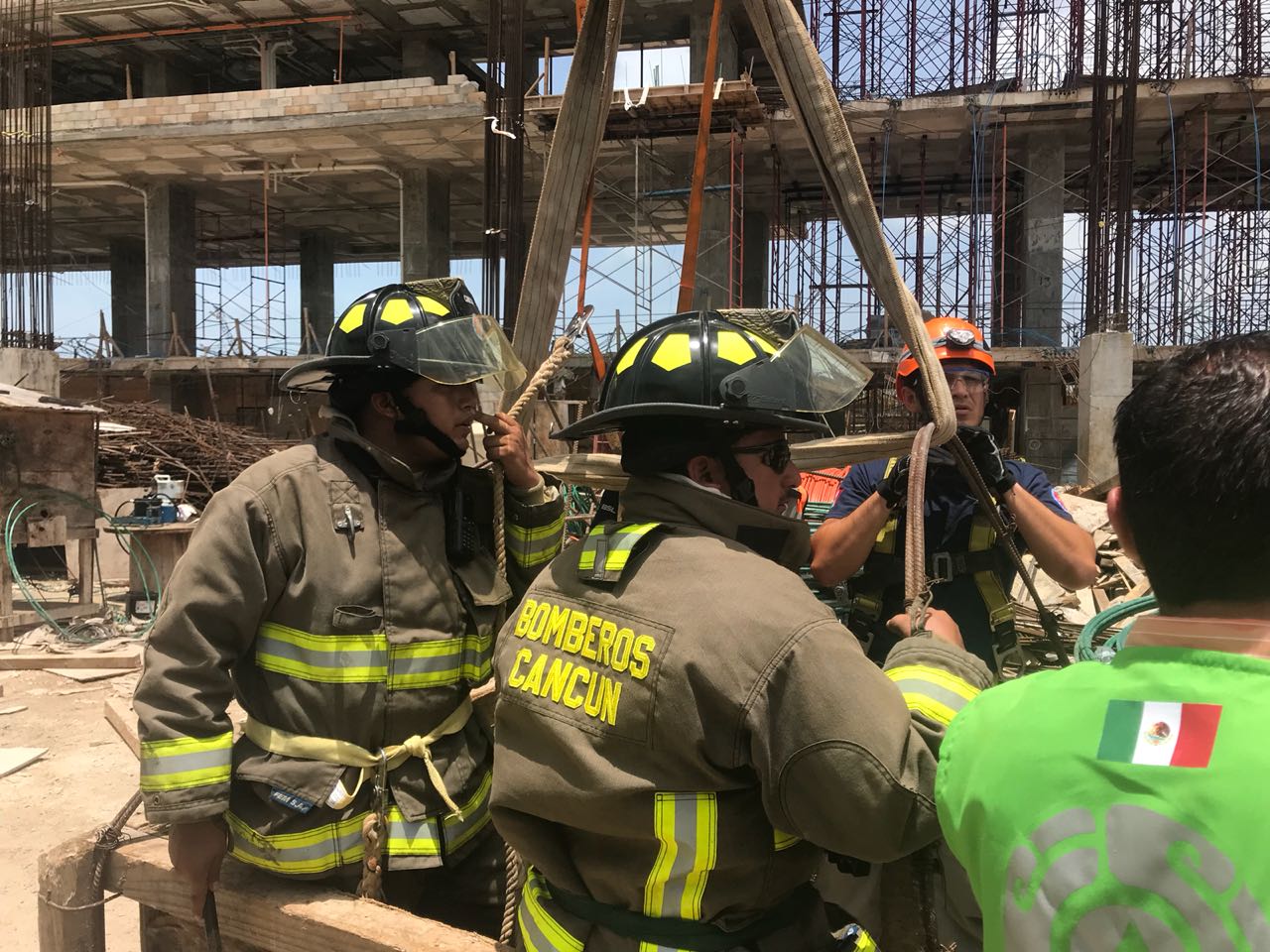 Al lugar llegaron once bomberos en cinco vehículos, que realizaron tres “barridos” de revisión en la obra, sacando a cuatro otros trabajadores, que fueron trasladados en ambulancias para su atención médica.