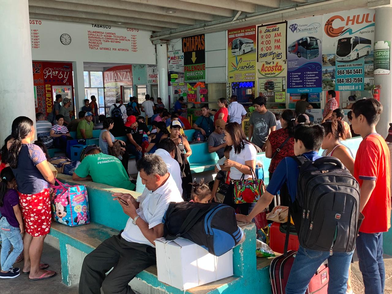 Playa del Carmen.- Totalmente abarrotada luce la terminal foránea de esta ciudad, por familias que abandonan el estado, al quedar “en pausa” o desempleadas, a raíz de los recortes o descansos aplicados por empresas, a raíz de la pandemia del coronavirus COVID-19.