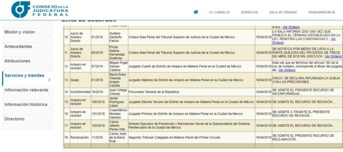 El recurso fue interpuesto el 3 de abril ante el Juzgado Séptimo de Distrito de Amparo en Materia Penal en la Ciudad de México. El amparo fue admitido el día 11, concediéndose la suspensión provisional, con la condición que depositara 5 mil pesos como garantía.