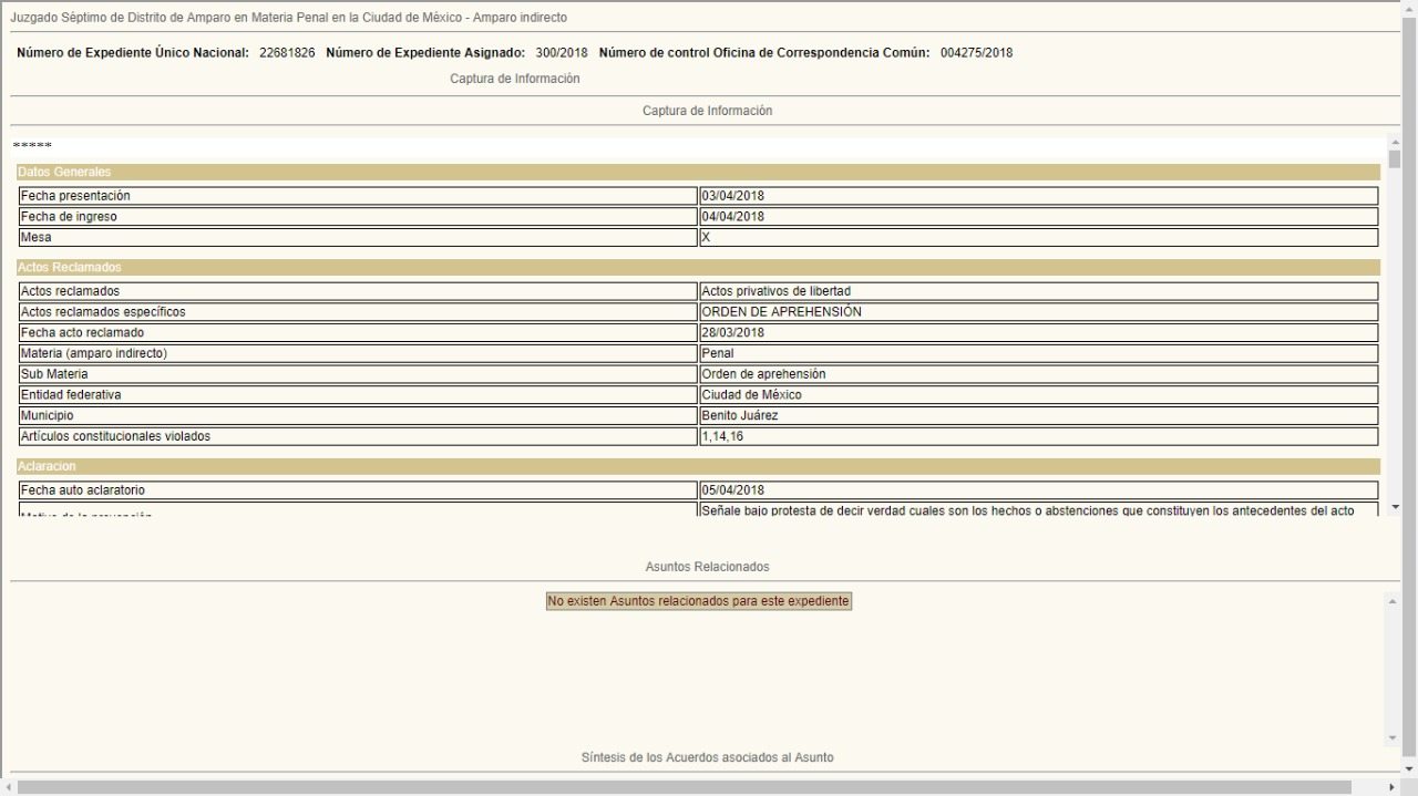 Presumiblemente, también se habría librado una orden de aprehensión en su contra, que no pudo ser ejecutada por este amparo.