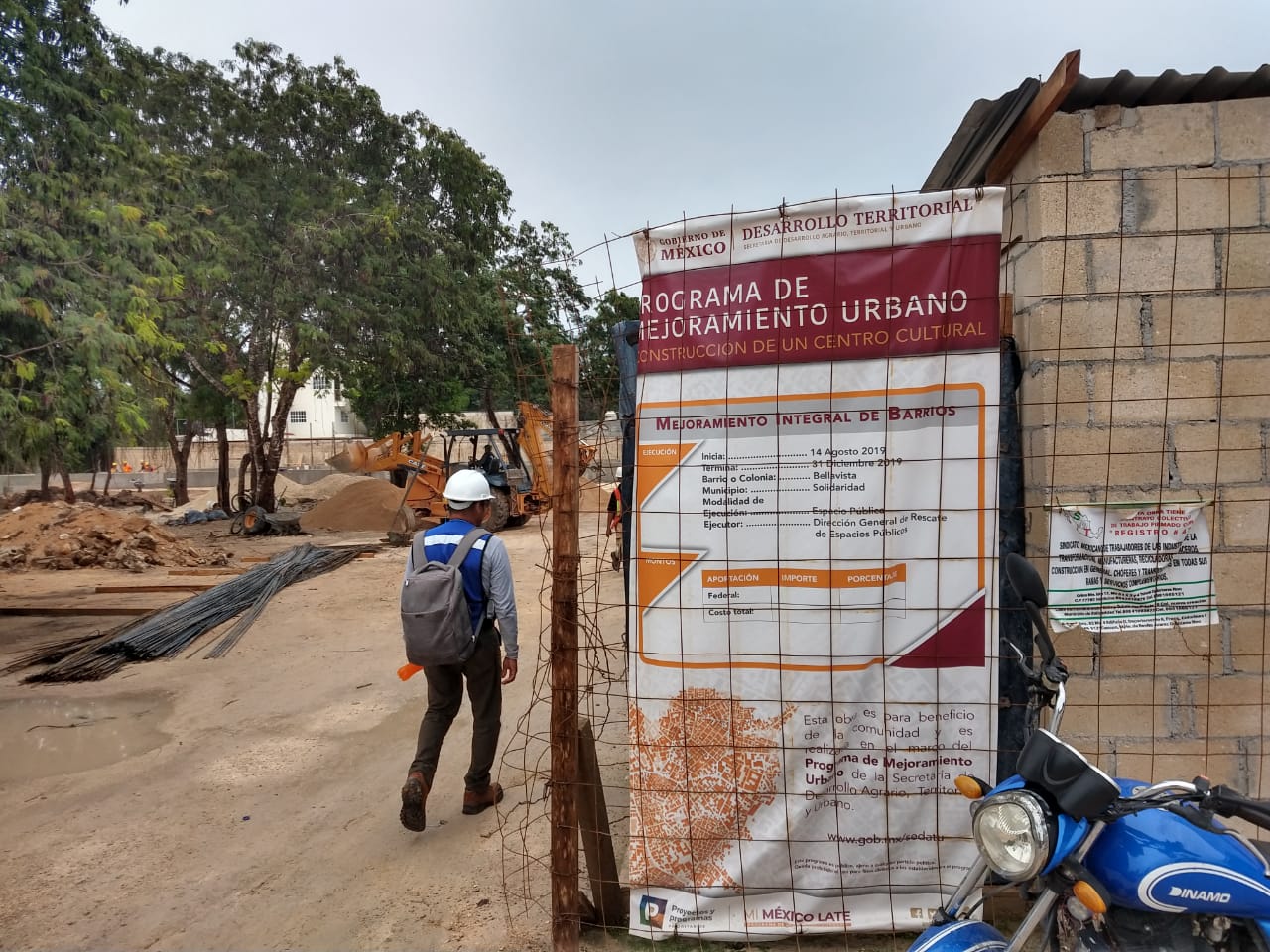 bano (Sedatu), en colaboración con el Ayuntamiento de Solidaridad. Se estima que los trabajos están al 50%, con fecha de entrega para enero próximo.