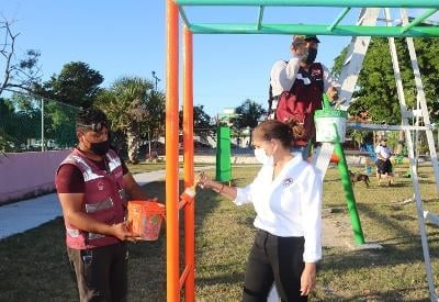 Cancún, Q.R., a 07 de noviembre de 2021.- Con el objetivo de evitar el acumulamiento de residuos que dañan la imagen urbana de la ciudad y erradicar la posibilidad de que existan encharcamientos e inundaciones, autoridades del Ayuntamiento de Benito Juárez realizaron una nueva jornada de Brigadas Integrales en el parque y canchas deportivas de la Supermanzana 505.