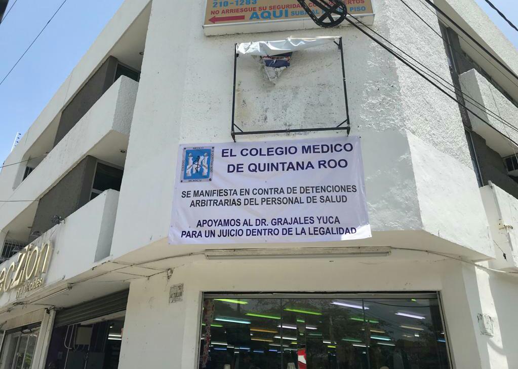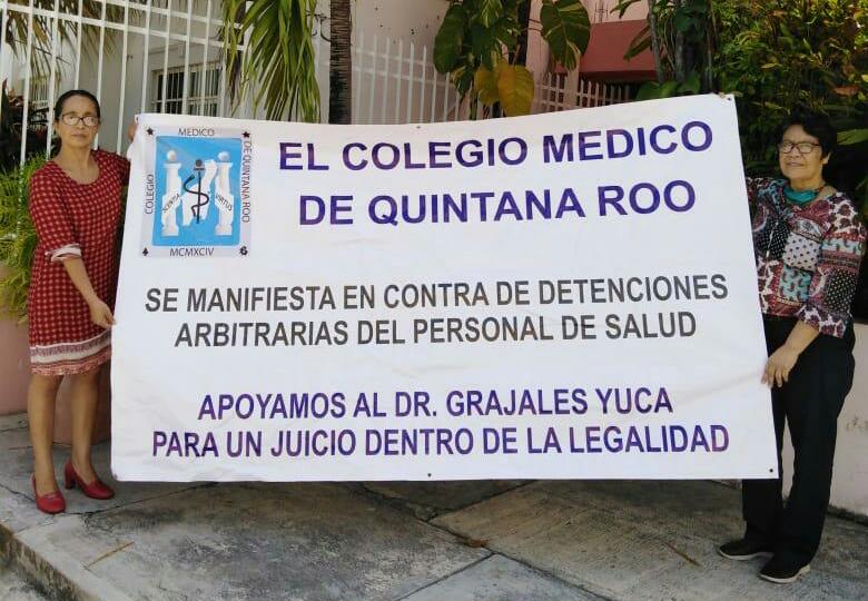 Las 22 organizaciones afiliadas al Colegio Médico de Quintana Roo, que representan a 500 profesionales de la salud, colocaron ocho mantas y carteles en Cancún y dos en Chetumal expresando su rechazo por el proceso penal que atraviesa su colega.